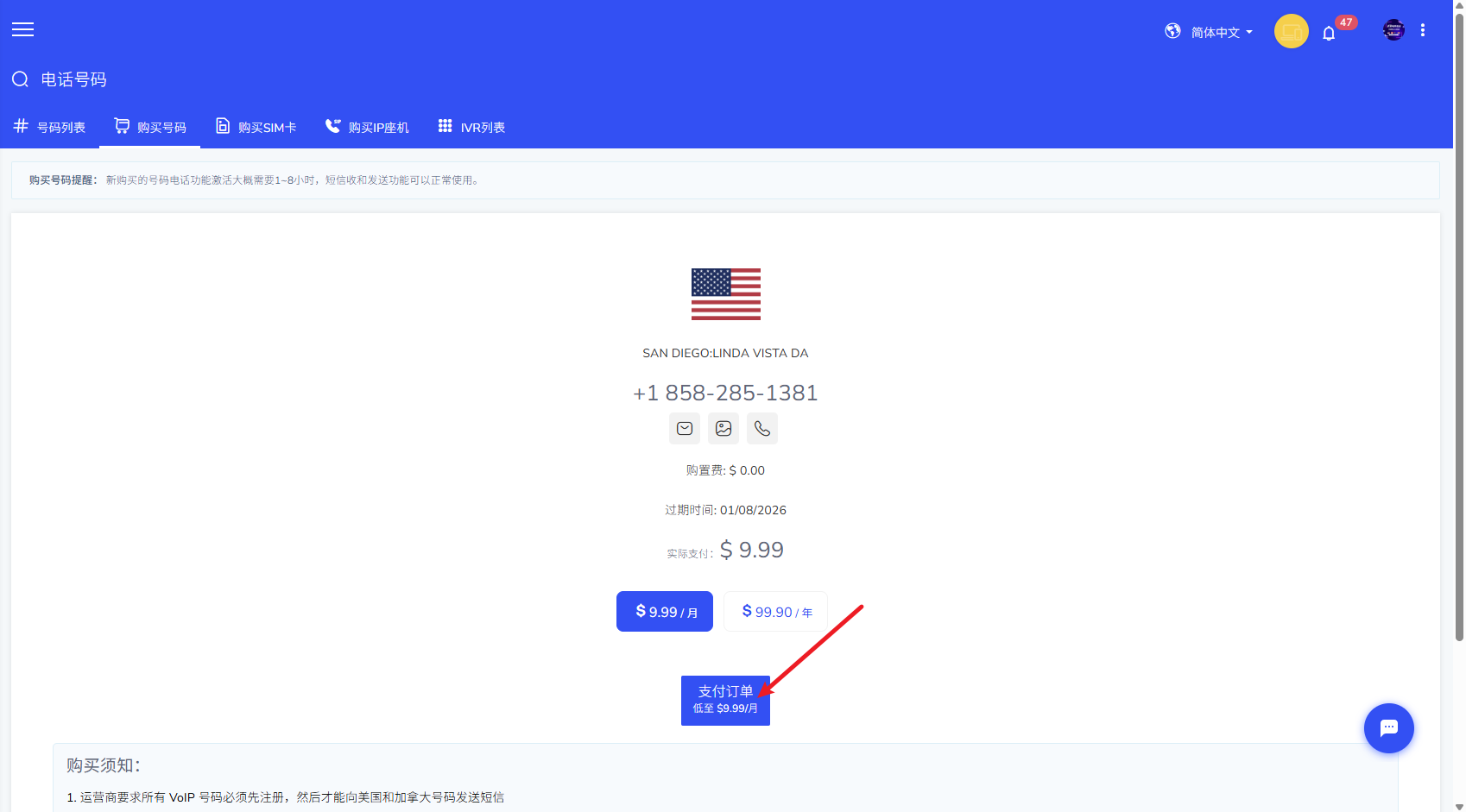 无需激活的号码:目前,购买美国、加拿大、英国、澳大利亚的号码,在支付成功后通常可立即使用,系统会自动完成激活。