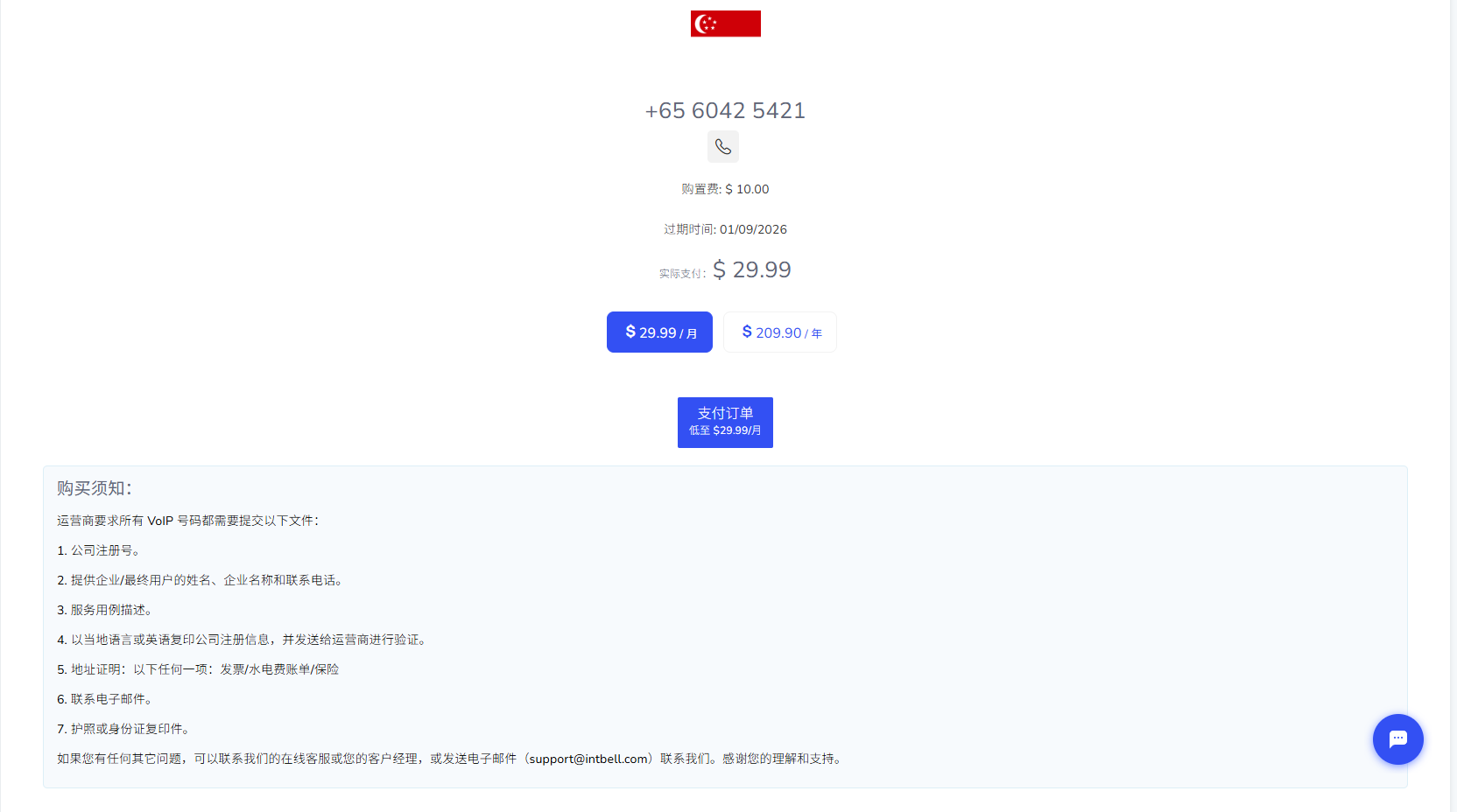 需要人工激活的号码:除上述四国外,购买其他绝大多数国家和地区的号码(如新加坡、泰国、日本等),必须联系客服提交资料,经运营商审核通过后方能开通使用。