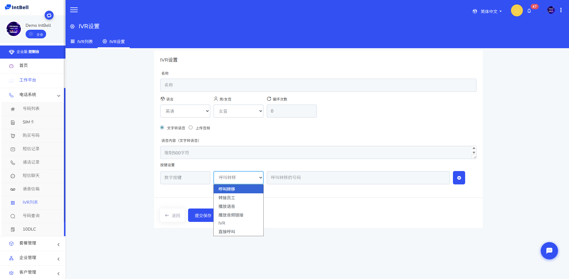 IntBell的智慧型通話配合多級IVR語音導航,客戶可快速獲得所需服務: