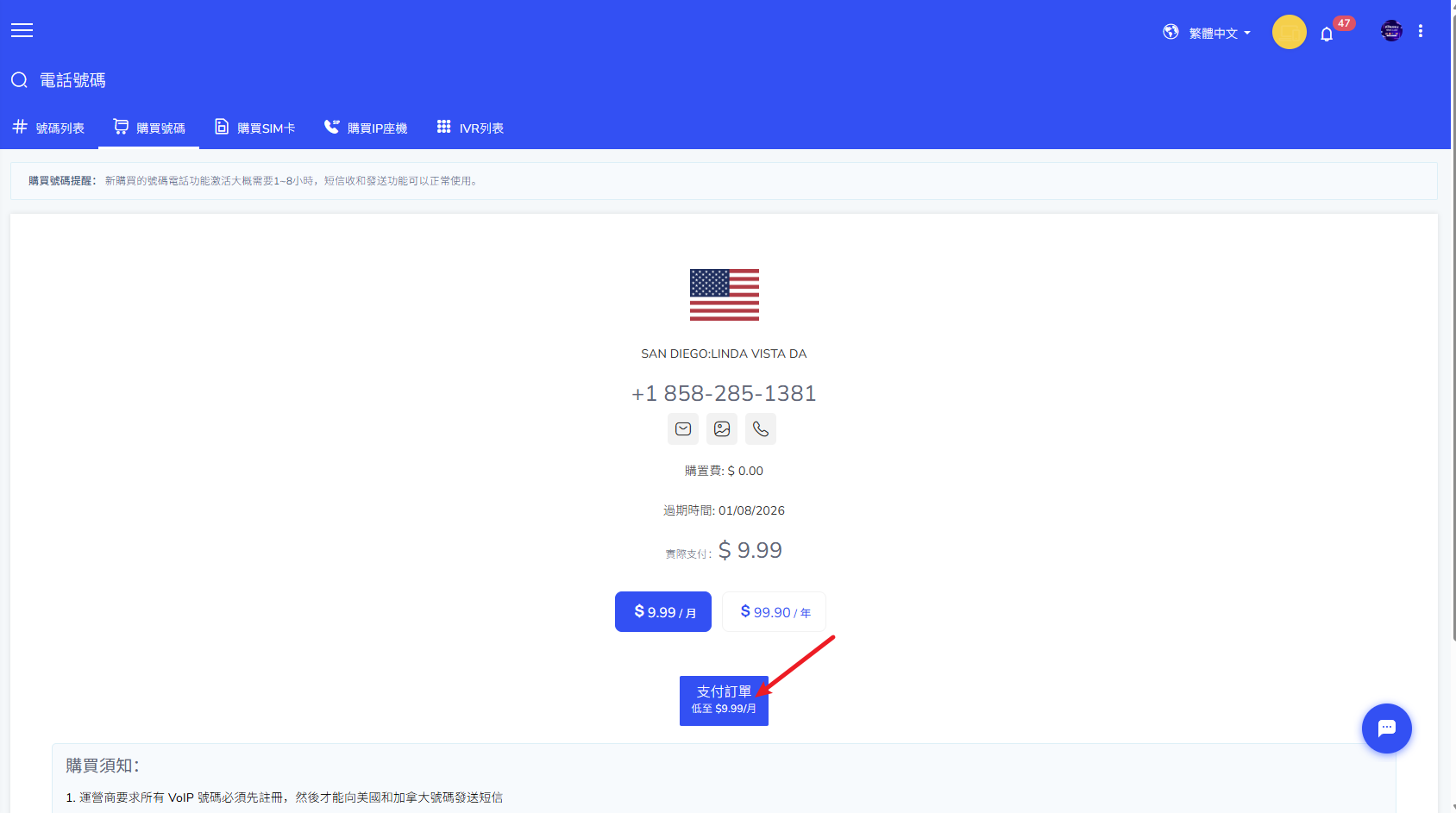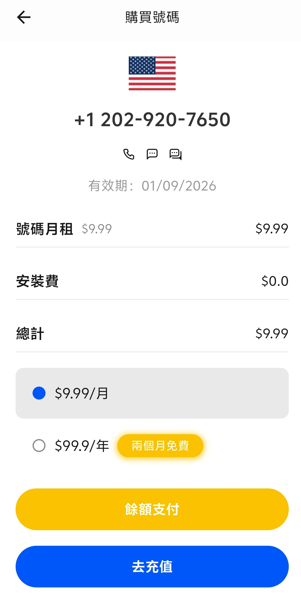 无需激活的号码:目前,购买美国、加拿大、英国、澳大利亚的号码,在支付成功后通常可立即使用,系统会自动完成激活。